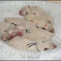 Nun kann man zusehen wie das Pigment sich bildet. Alle Agent´s haben den Schornsteinfeger geküsst. Nase, Mäulchen und Pfötchen dunkeln langsam nach. Bei manchen hängen auch die Ohren schon weich runter, sind wohl doch keine Spitz Hunde geworden 😀 . Penny ist klasse es geht ihr prima.