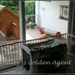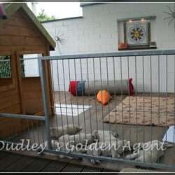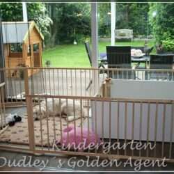 So nun sind wir fast 4 Wochen jung und aus dem Kindergarten ist eine Grundschule geworden. Bei uns sind das die I- Dötze, wenn Kinder eingeschult werden. Die Wurfkiste ist nun ganz weg und wir haben einen Zimmerkennel als Kuschelhöhle. Die Terrasse wurde von uns auch erobert. Es ist spannend in unserem neuen Domizil.