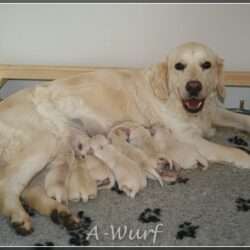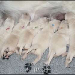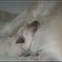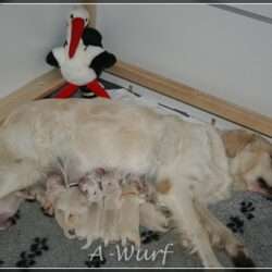 Es stand unentschieden 4 Rüden / 4 Hündinnen. Leider kam der erste Rüde nicht lebend zur Welt. Es war für uns ein Feuerwerk der Emotionen. Angefangen von einem Tief und über pures Glückgefühl bis hin zur Erschöpfung.
