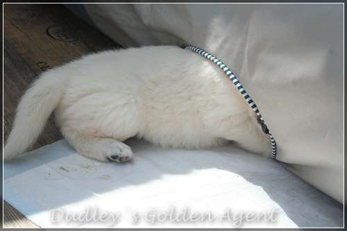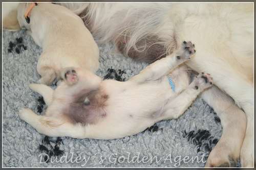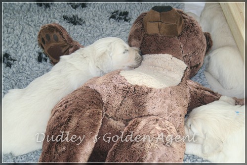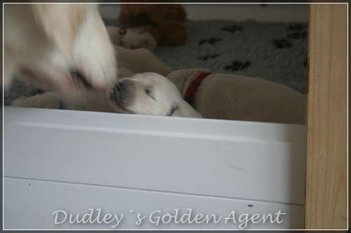 Hurra wir sind umgezogen aus der Babystation in den Kindergarten. Nun können wir unsere Laufübungen und die Nasenarbeit noch verfeinern. Beim Säugen hat Penny jetzt auch richtig Platz, denn die kleinen Agents machen sich ganz schön dick.