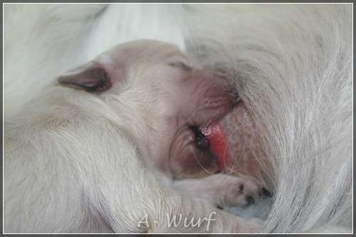 Es stand unentschieden 4 Rüden / 4 Hündinnen. Leider kam der erste Rüde nicht lebend zur Welt. Es war für uns ein Feuerwerk der Emotionen. Angefangen von einem Tief und über pures Glückgefühl bis hin zur Erschöpfung.
