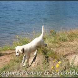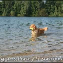 Wir wollten Scrabble mal ein großes Wasser zeigen, zum planschen fand sie es auch super. Schwimmen sollten aber doch bitte die Großen ;-D