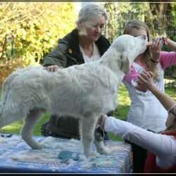Heute waren Agent Cody mit Fam. und Agent Leroy mit Fam. bei uns. Beide wollen im Dez. ausstellen. Außerdem war ihre Halbschwester Page (of- golden-mountain-lake ) mit Renate dabei. Jessica Tölle, unsere Nichte als Aussteller Profi ;-D übernahm das Training und Trimmen der Agent´s .