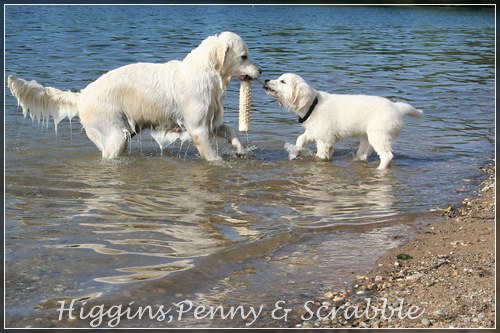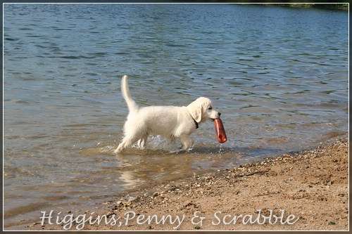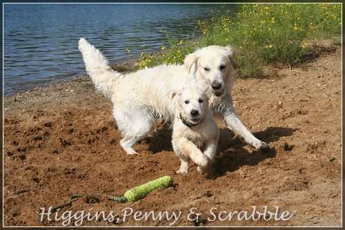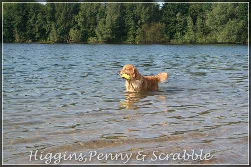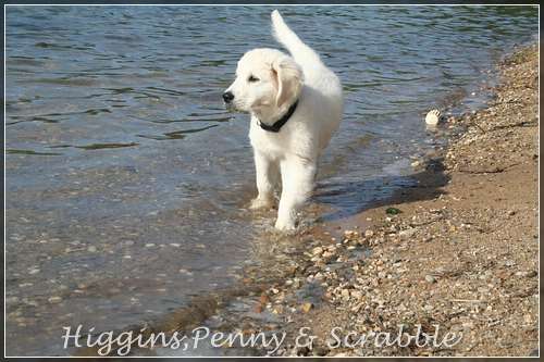 Wir wollten Scrabble mal ein großes Wasser zeigen, zum planschen fand sie es auch super. Schwimmen sollten aber doch bitte die Großen ;-D