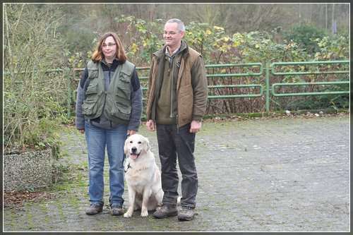 Es starteten sechs Teams, ein Toller, ein Labbi und vier Golden. Es war eine nette Truppe wo jeder für jeden die Daumen drückte. Leider ist das Team mit dem Toller nicht durchgekommen. Dirk und Scrabble hatten die Nr. 6 was schon etwas blöd war. So mussten wir immer zum Schluss arbeiten.