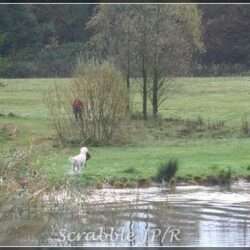 Die erste Aufgabe war die Wasserarbeit, bei sehr schönen morgendlichen Frühnebel über dem Wasser und den Wiesen war es eine schöne Atmosphäre. Da wir uns gewünscht hätten nicht gerade mit Wasser zu beginnen war die Anspannung schon sehr groß. Aber alles ist sehr gut verlaufen 10 Pkt. für Scrabble. Dann kam Merken im Feld 9 Pkt. im Anschluss die Schussfestigkeit. Die Schleppe lief super 10 Pkt. dann war Pause und als letztes Fach kam die freie Verlorensuche. Scrabble brachte alle vier Stck. Wild raus. 10 Pkt.