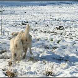 Heute sind wir mit unserer Meute nach Waldbröl zu einem 1/2 Tages Seminar zu Angelika Theuerkauf gefahren. Die Junghundegruppe übte sich in Gehorsam, Heelwork und Dummyarbeit. In einer sonnigen Winterlandschaft haben wir mit netten Gleichgesinnten schöne Stunden erlebt. Dank Renate haben wir auch ein paar Bilder von Scrabble. (Golden-Mountain-Lake) Renate war mit Page und Peter mit Diesel dabei , beide sind Halbschwestern von unserer Scrabble.