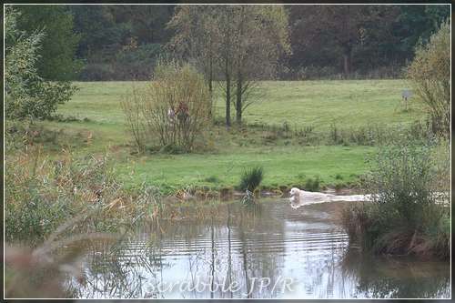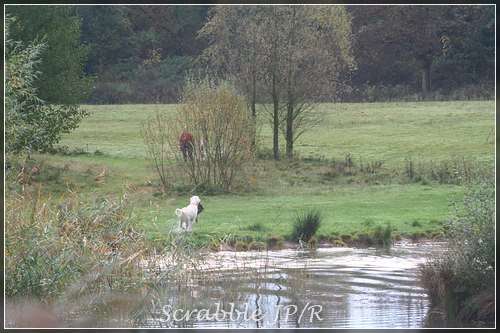 Die erste Aufgabe war die Wasserarbeit, bei sehr schönen morgendlichen Frühnebel über dem Wasser und den Wiesen war es eine schöne Atmosphäre. Da wir uns gewünscht hätten nicht gerade mit Wasser zu beginnen war die Anspannung schon sehr groß. Aber alles ist sehr gut verlaufen 10 Pkt. für Scrabble. Dann kam Merken im Feld 9 Pkt. im Anschluss die Schussfestigkeit. Die Schleppe lief super 10 Pkt. dann war Pause und als letztes Fach kam die freie Verlorensuche. Scrabble brachte alle vier Stck. Wild raus. 10 Pkt.