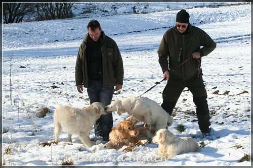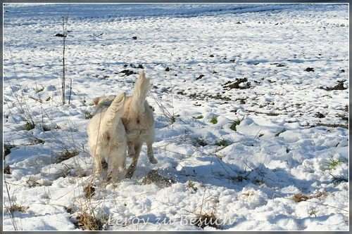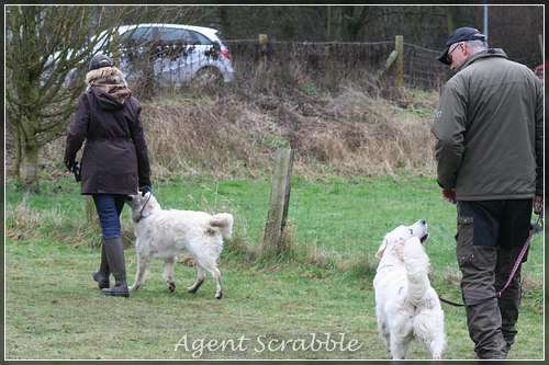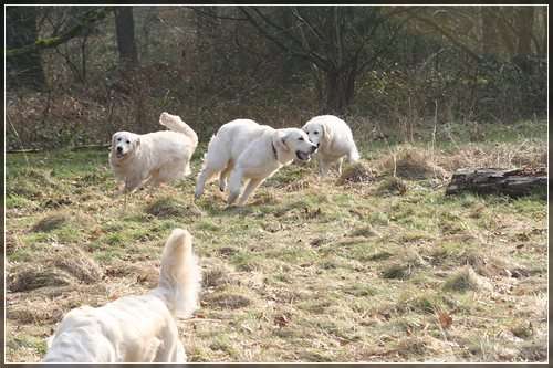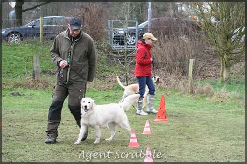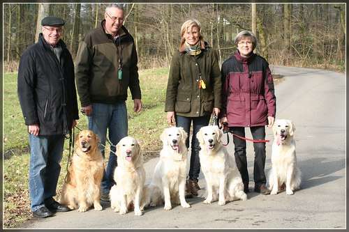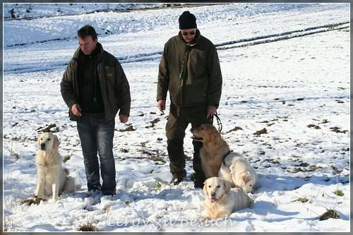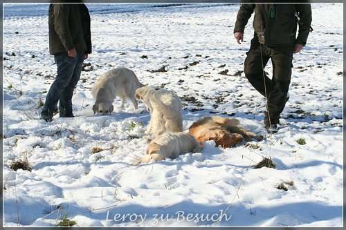Heute sind wir mit unserer Meute nach Waldbröl zu einem 1/2 Tages Seminar zu Angelika Theuerkauf gefahren. Die Junghundegruppe übte sich in Gehorsam, Heelwork und Dummyarbeit. In einer sonnigen Winterlandschaft haben wir mit netten Gleichgesinnten schöne Stunden erlebt. Dank Renate haben wir auch ein paar Bilder von Scrabble. (Golden-Mountain-Lake) Renate war mit Page und Peter mit Diesel dabei , beide sind Halbschwestern von unserer Scrabble.