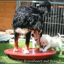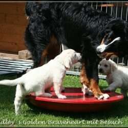 Heike unsere Freundin, war mit ihren beiden Berner Hündinnen Cara und Eliza da. Die kleinen Braveheart´s fanden den Besuch auf Anhieb toll.