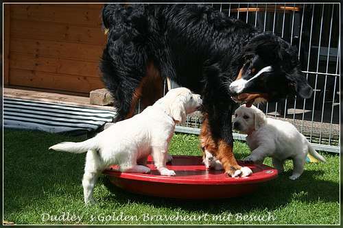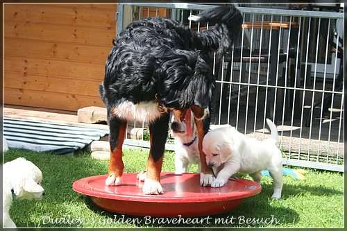 Heike unsere Freundin, war mit ihren beiden Berner Hündinnen Cara und Eliza da. Die kleinen Braveheart´s fanden den Besuch auf Anhieb toll.