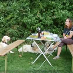 Bei sehr sommerlichen Wetter (30-33 Grad) sind wir auf Campingtour gefahren. Mit dabei waren Katja und Sascha und natürlich alle Hunde. Wir schwitzten im Wohnwagen und Katja und Sascha im Zelt. Die Männer waren auf der Jagd und wir Frauen hüteten die Hundeschar. Der Campingplatz liegt an dem Fluss Nahe in Monzingen und ist für Naturfreunde perfekt.