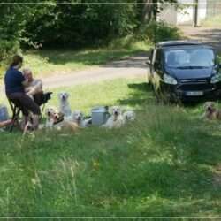 Grund genug um ein Wurftreffen zu machen. Bei sommerlichem Wetter konnten sieben Eyecatcher kommen. Es ist immer schön die Familien mit ihren Fellnasen zu treffen. Bei dem Versuch, dass mit Fotos fest zu halten, kamen ein paar nette Fotos bei raus.