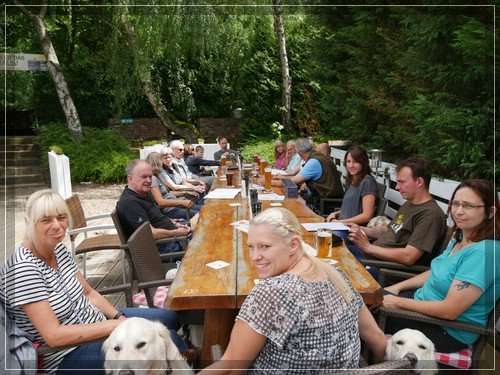 Heute trafen sich der A-, B- und D-Wurf nachträglich zur Geburtstagsfeier in Moers. Nicht alle konnten dabei sein, doch es ist immer schön die eigene Nachzucht zu treffen. Nach einem entspannten Spaziergang um den Moerser Waldsee konnten wir mit allen Hunden anschließend in den Biergarten vom Moerser Brauhaus. Klasse Lokal mit gutem Essen.