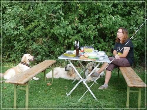 Bei sehr sommerlichen Wetter (30-33 Grad) sind wir auf Campingtour gefahren. Mit dabei waren Katja und Sascha und natürlich alle Hunde. Wir schwitzten im Wohnwagen und Katja und Sascha im Zelt. Die Männer waren auf der Jagd und wir Frauen hüteten die Hundeschar. Der Campingplatz liegt an dem Fluss Nahe in Monzingen und ist für Naturfreunde perfekt.