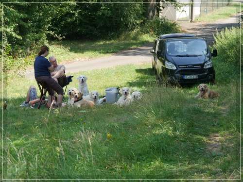 Grund genug um ein Wurftreffen zu machen. Bei sommerlichem Wetter konnten sieben Eyecatcher kommen. Es ist immer schön die Familien mit ihren Fellnasen zu treffen. Bei dem Versuch, dass mit Fotos fest zu halten, kamen ein paar nette Fotos bei raus.