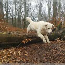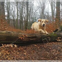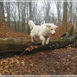 Heute ist Angel mit Oma Penny im Wald unterwegs. Penny mit fast 12 Jahren ist immer noch gut drauf. Wenn Angel über einen querliegenden Baum fliegt versucht Penny es auch, da kann ich nur grinsen.