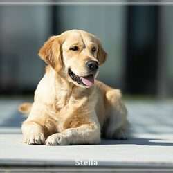 Die 14 Monate alte Golden Hündin mit mittlerer Aktivität geht sicher durch die unbelebte Umwelt, bei der Kontaktaufnahme in der belebten Umwelt zeigt sie teilweise ein submissives Display, sie apportiert engagiert und sucht gerne die Beute.