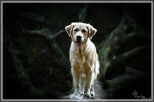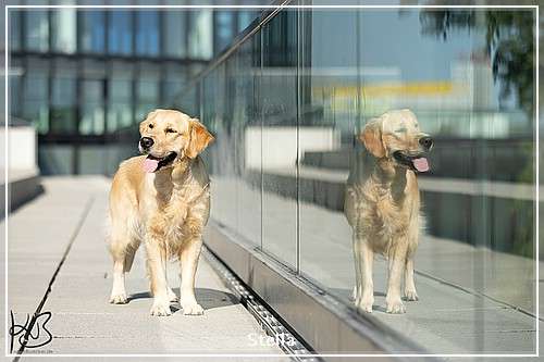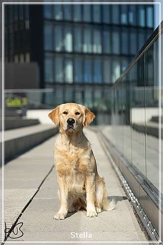 Die 14 Monate alte Golden Hündin mit mittlerer Aktivität geht sicher durch die unbelebte Umwelt, bei der Kontaktaufnahme in der belebten Umwelt zeigt sie teilweise ein submissives Display, sie apportiert engagiert und sucht gerne die Beute.