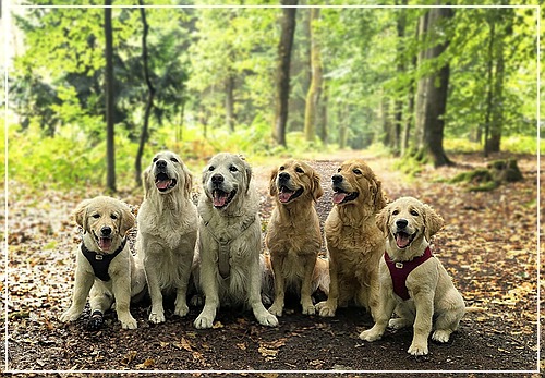 Mal mit ihrém Wurf von 9 Welpen und unserem Rudel, also eine