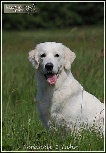 Formwert: Vorzüglich – Harmonische Hündin, fem.Kopf. Sanfter Ausdruck. Gut ausgepr.Vorbrust. Sehr gute Knochensubstanz. Korr. Winkel , gut gewölbter Brustkorb. Bewegt sich gut. VDH-Zuchtrichter Fr. Dagmar Winter